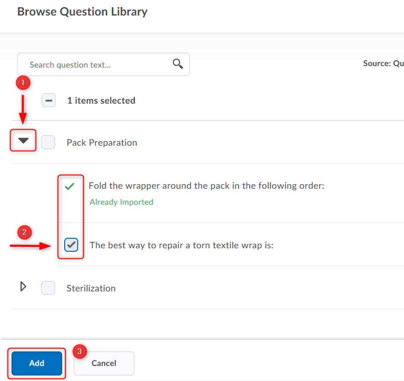 5. To search in the Question Library, enter a keyword in the ‘Search question text‘ field.