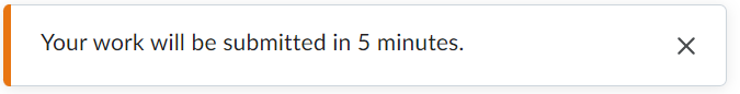 Students will also see timer warnings before they run out of time, so they can prepare their work to be automatically submitted or manually submit their work before it gets flagged as exceeding the time limit. These timer warnings provide learners with a message on enforced time quizzes to warn of time remaining. There are 3 timer warnings: