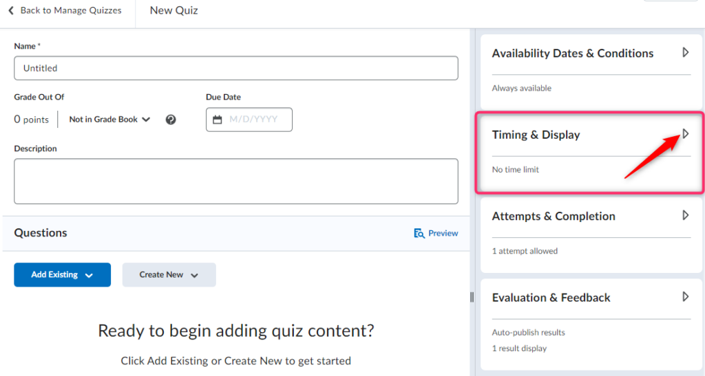Adapted from Quiz Timing Improvements – Phase 3 of 3 – Brightspace