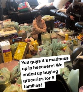 “In the community group that I follow on Facebook I had noticed many people currently struggling with the current situation. With money, with food, with everything. I decided I was going to help. I talked to my sisters and asked if they wanted to put some of our money together and purchase groceries for 2 people in our community. It attracted a few of our friends and family members that wanted to help as well and they donated some money. It even attracted a random stranger in the group who sent me $100 to help! In total instead of just helping out two families we ended up helping 8 families!”