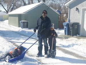 “On Saturday, April 4, the day after all that snow, a city plow drove down my back lane leaving a massive windrow behind my parked car! When I left my house to head to the grocery store, I noticed that not only had the plow come and gone, but my windrow had been cleared. In fact, a neighbor and his two young children were having a great time shoveling several windrows down the lane – spreading a little kindness during this tough time.”
